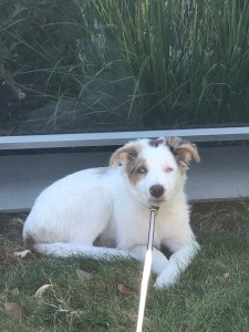 Penny is now 15 weeks old, and even though she is adorable and we love her to pieces, she has been a bit more of a challenge than I expected. I have been spending quite a bit of time with her learning how to communicate and training her through sign language and positive reinforcement. We knew adding a deaf border collie to our family would add some interesting dynamics for us and that it has. I have to admit a little more than we expected. I was prepared for the challenge of her being deaf, a border collie in the city, but I thought somehow her being deaf would balance out some of that physical energy a border collie needs with more mental energy. While that has not been the case, Penny has more physical and mental energy than I even imagine. Her being deaf has not slowed her down at all. She learns bad behavior as fast as the good. We struggle a bit correcting the bad, so she understands the behavior we want, and we all can get frustrated, especially Penny. The problem comes with getting her attention and reinforcing the good, so she understands.